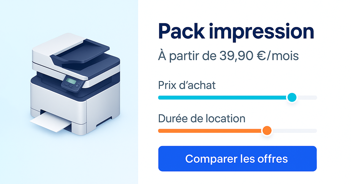 La location d’imprimante professionnelle est généralement plus souple à court terme, tandis que le leasing imprimante (crédit-bail) vous permet de devenir propriétaire à la fin du contrat. Chaque formule est adaptée à un profil d’entreprise différent.